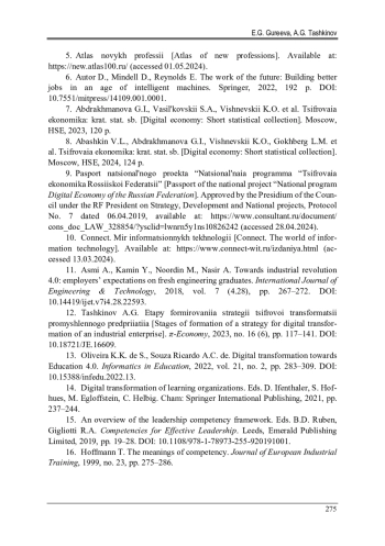 24. Tashkinov A.G. Razvitie tsifrovoi ekonomiki s elementami berezhlivogo proizvodstva na predpriiatii [The development of a digital economy with elements of lean manufacturing in the enterprise]. Moscow, INFRA-M, 2024, 193 p.