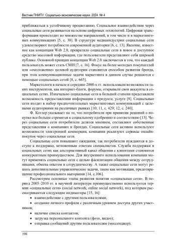 16. Temnikova, L.B. Social media as an integral element of modern communication / L.B. Temnikova, A.V. Vandisheva // Communication Studies. - 2022. - Vol. 9, no. 2. - P. 274-284. DOI: 10.24147/2413-6182.2022.9(2).274-284 EDN: SKHPCE