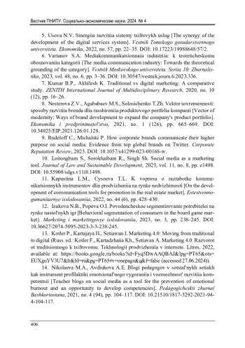 11. Капустина, Л.М. К вопросу о разработке коммуникационных инструментов для продвижения на рынке недвижимости / Л.М. Капустина, Т.Л. Cысоева // Естественно-гуманитарные исследования. - 2022. - № 44(6). - С. 428-430. EDN: PDMHWU