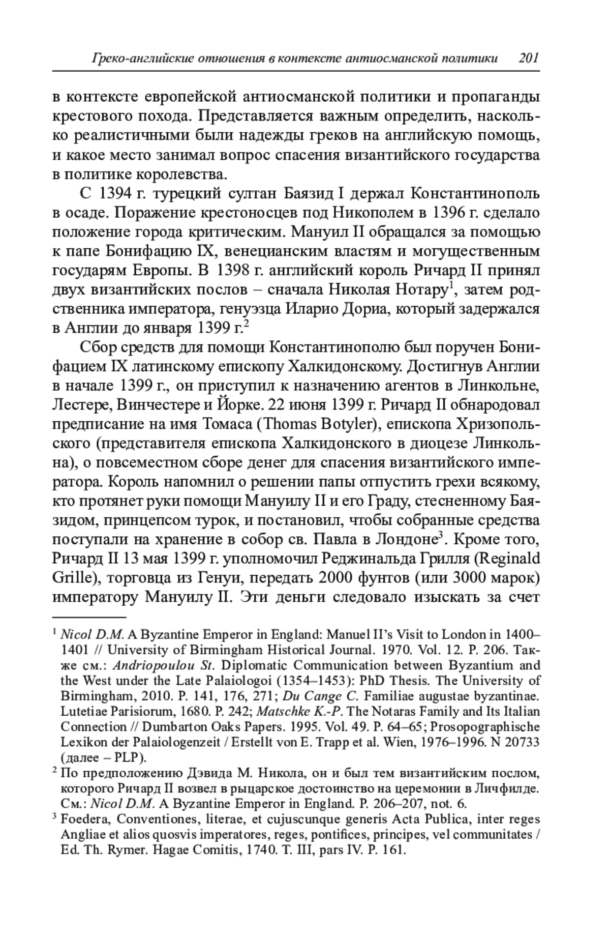 35. Nicol D.M. A Byzantine Emperor in England: Manuel II’s Visit to London in 1400-1401 // University of Birmingham Historical Journal. 1970. Vol. 12. P. 204-225.