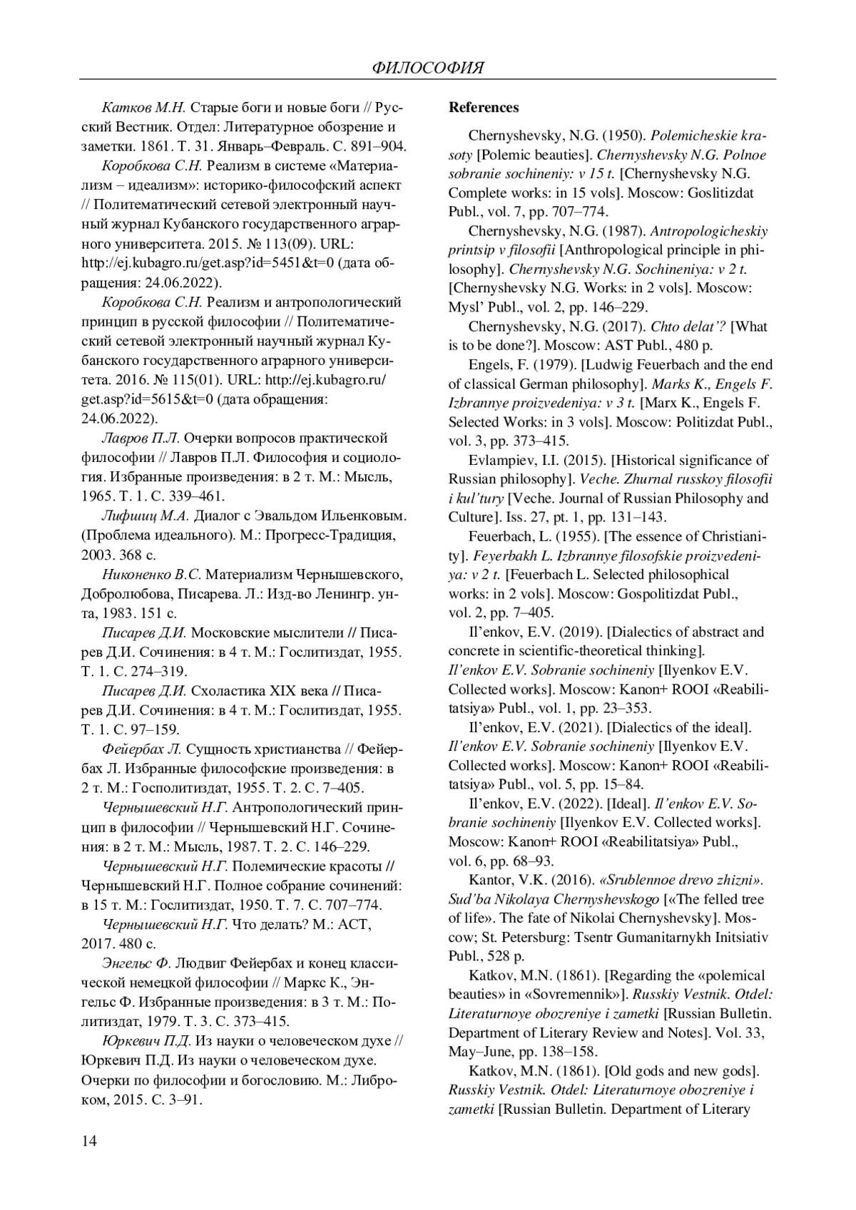 9. Коробкова С.Н. Реализм и антропологический принцип в русской философии // Политематический сетевой электронный научный журнал Кубанского государственного аграрного университета. 2016. № 115(01). URL: http://ej.kubagro.ru/get.asp?id=5615&t=0 (дата обращения: 24.06.2022). EDN: VJLRQZ