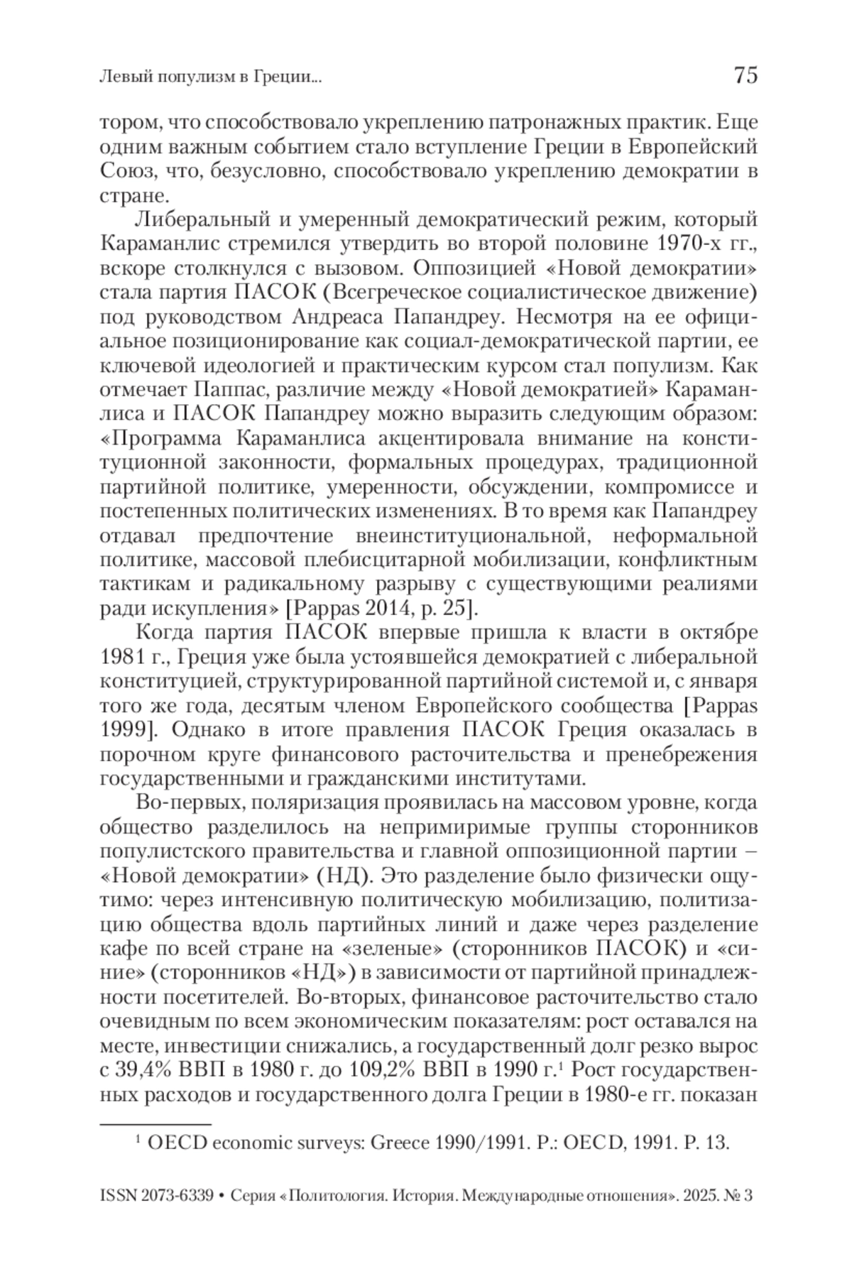 5. Lyrintzis 1987 - Lyrintzis C. The power of populism: The Greek case // European Journal of Political Research. 1987. Vol. 15. No. 6. P. 667-686.