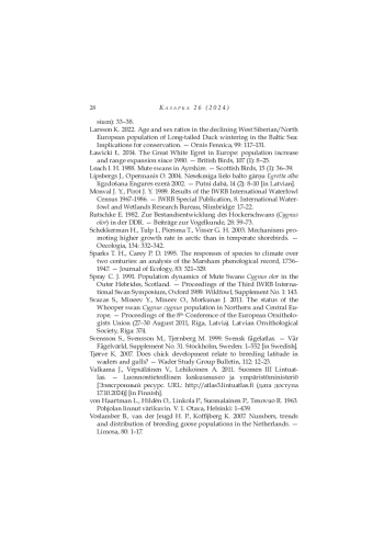 78. Lipsbergs J., Opermanis O. 2004. Nesekmīga lielo balto gārņu Egretta alba ligzdošana Engures ezerā 2002. - Putni dabā, 14 (2): 8-10 [in Latvian].