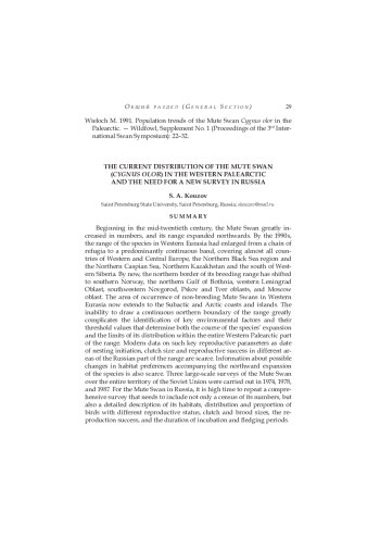 74. Krivonosov G. A. 1991. The status and distribution of the Mute Swan Cygnus olor in the USSR: a review of recent censuses. - Wildfowl, Supplement No. 1 (Proceedings of the 3rd International Swan Symposium): 33-38.