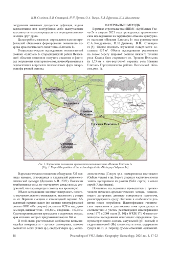 Цель - определение палеогеографической обстановки формирования почвенного покрова археологического памятника «Елюзань I». Материалы и методы. В 2021 году изучены почвы памятника эпохи неолита «Елюзань I» в 1,75 км к юго-западу от с. Нижняя Елюзань Городищенского района Пензенской области в пределах нижнего течения долины р. Кадада. Использованы почвенно-археологические методы изучения и их основные физико-химические свойства почв (гранулометрический состав, кислотность, сумма обменных оснований, содержание органического углерода и пр.), выполненные на базе аттестационной лаборатории. Результаты и обсуждение. Выявлены два типа синлитогенных почв: погребенная дерново-супесчаная серая почва (стратозем) и современная аллювиальная (серогумусовая) почва. Выявлена роль почвенной фауны в погружении культурного слоя, а также периодического увлажнения в формировании почвенного профиля. Выводы. Поверхность дюнного возвышения была удобным непотопляемым местом временной стоянки древних людей эпохи энеолита. В это время сформировалась дерново-супесчаная серая почва и культурный слой на её поверхности. После погребения речным аллювием стала развиваться современная дерновая (серогумусовая) почва. Почвенная фауна обусловила погружение культурного слоя на различную глубину погребенной почвы. Периодическое подтопление обусловило процессы оглеения почвенного профиля.