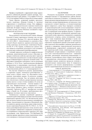 ИШАМЯТОВА И. Х., ЕФРЕМОВА Е. В., ТКАЧУК О. А., ДРЕМОВ И. И., СТАВИЦКИЙ В. В., СОЛОДКОВ Н. Н. ИЗМЕНЕНИЕ ПОЧВЕННОГО ПОКРОВА ПОД ВЛИЯНИЕМ ЭОЛОВОЙ И ВОДНОЙ СЕДИМЕНТАЦИИ // ВЕСТНИК ВОРОНЕЖСКОГО ГОСУДАРСТВЕННОГО УНИВЕРСИТЕТА. СЕРИЯ: ГЕОГРАФИЯ. ГЕОЭКОЛОГИЯ. 2025. № 1