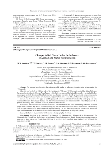 Статья: ИЗМЕНЕНИЕ ПОЧВЕННОГО ПОКРОВА ПОД ВЛИЯНИЕМ ЭОЛОВОЙ И ВОДНОЙ СЕДИМЕНТАЦИИ (2025)
