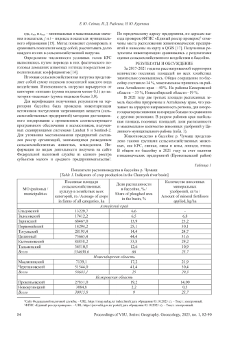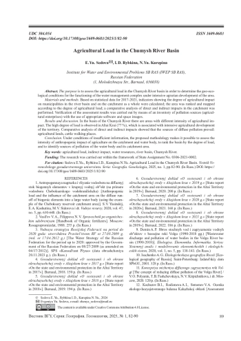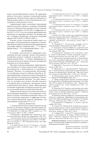 Ключевые фразы: сельскохозяйственная нагрузка, косвенное воздействие, ВОДНЫЕ РЕСУРСЫ, речной бассейн, р чумыш