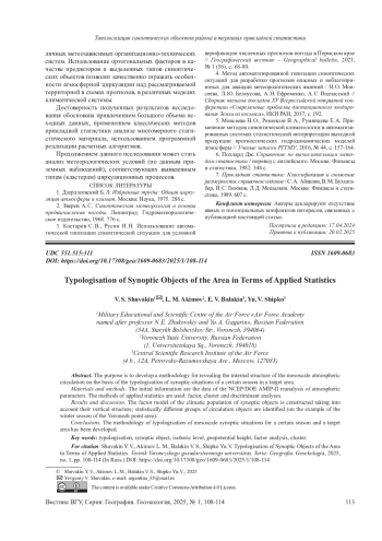 3. Костарев С.В., Русин И. Н. Использование автоматической типизации синоптической ситуации для условной верификации численных прогнозов погоды в Пермском крае II Географический вестник - Geographical bulletin, 2021, № 1 (56), с. 68-80.