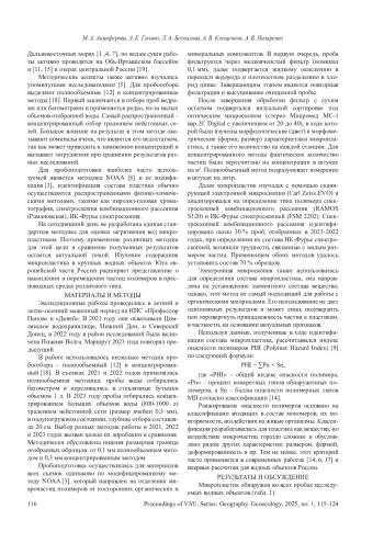 15. Pollution of Beach Sands of the Ob River (Western Siberia) with Microplastics and Persistent Organic Pollutants / Yu.A. Frank, Yu. S. Sotnikova, V. Yu. Tsygankov, et al. // Journal ofXenobiotics, 2024, vol. 14, no. 3, рр. 989-1002.