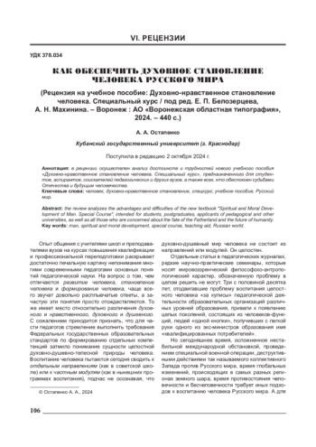 2. Духовно-нравственное становление человека. Специальный курс. Учебное пособие / под ред. Е. П. Белозерцева, А. Н. Махинина. - Воронеж: АО “Воронежская областная типография”, 2024. -440 с.