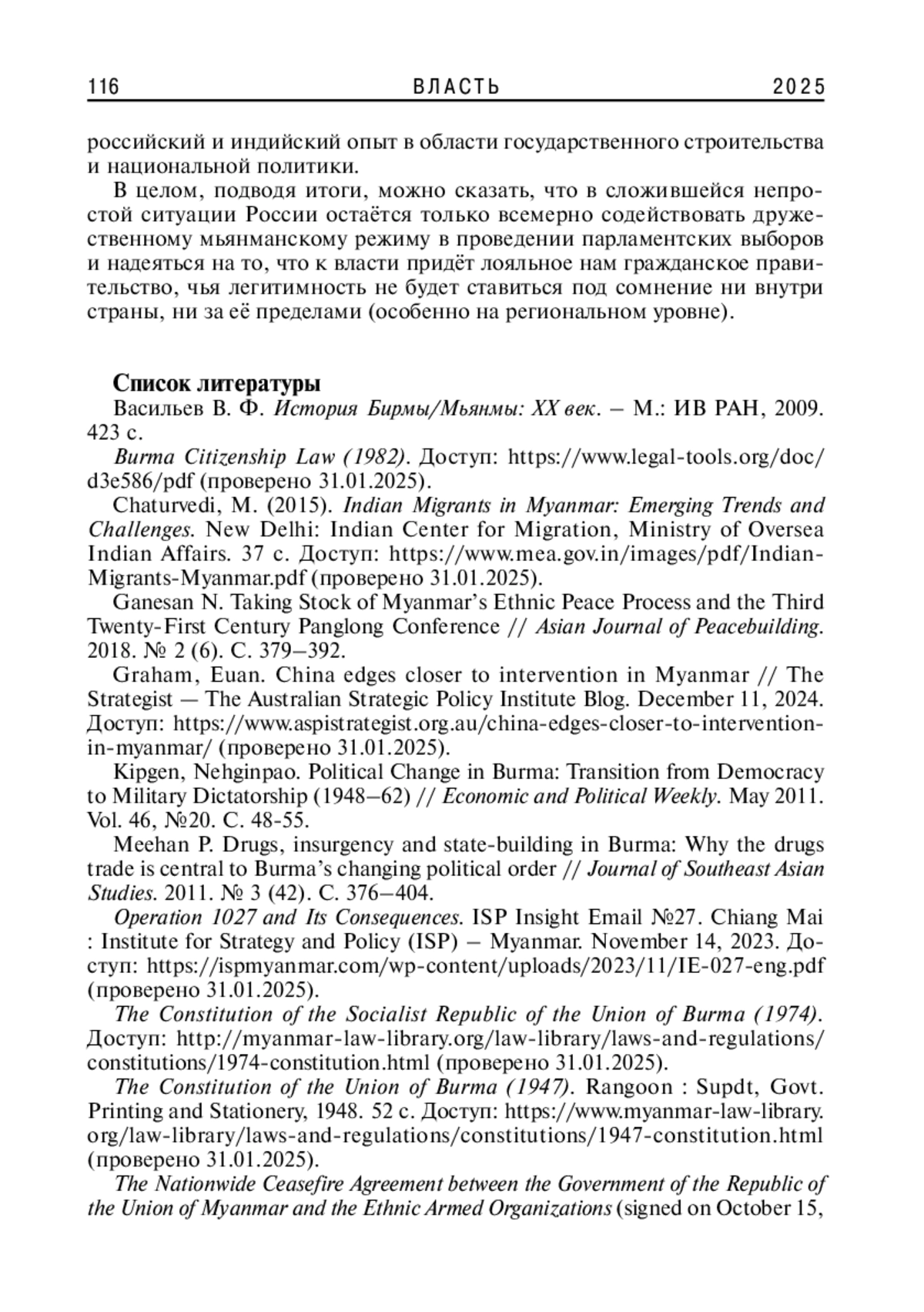 9. The Constitution of the Socialist Republic of the Union of Burma (1974). Доступ: http://myanmar-law-library.org/law-library/laws-and-regulations/ constitutions/1974-constitution.html (проверено 31.01.2025).