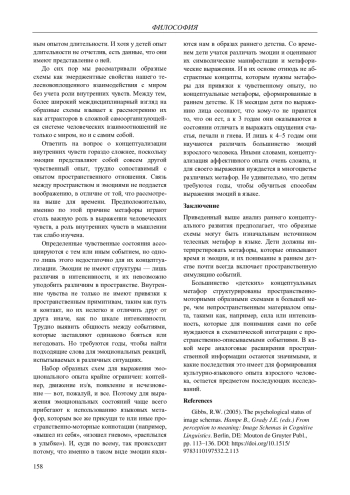 1. Gibbs, R.W. (2005). The psychological status of image schemas. Hampe B., Grady J.E. (eds.) From perception to meaning: Image Schemas in Cognitive Linguistics. Berlin, DE: Mouton de Gruyter Publ., pp. 113-136. DOI: 10.1515/9783110197532.2.113