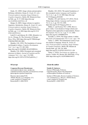 10. Szwedek, A. (2019). The image schema: A definition. Styles of Communication. Vol. 11, no. 1, pp. 7-28.