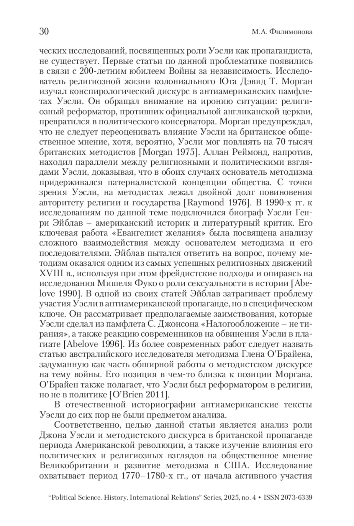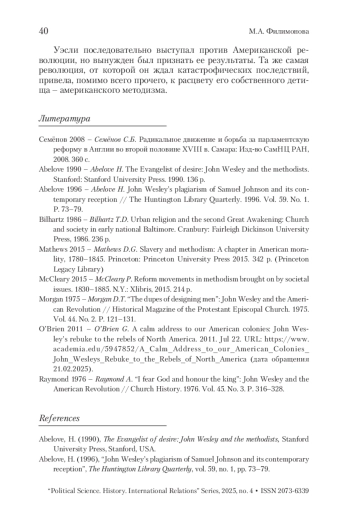 7. Morgan 1975 - Morgan D.T. “The dupes of designing men”: John Wesley and the American Revolution // Historical Magazine of the Protestant Episcopal Church. 1975. Vol. 44. No. 2. P. 121-131.