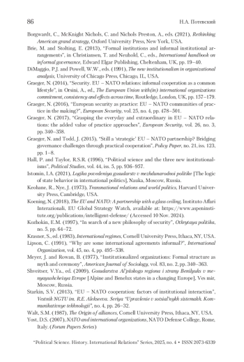 12. Graeger 2016 - Graeger N. European security as practice: EU - NATO communities of practice in the making?” // European Security. 2016. Vol. 25. No. 4. P. 478-501.