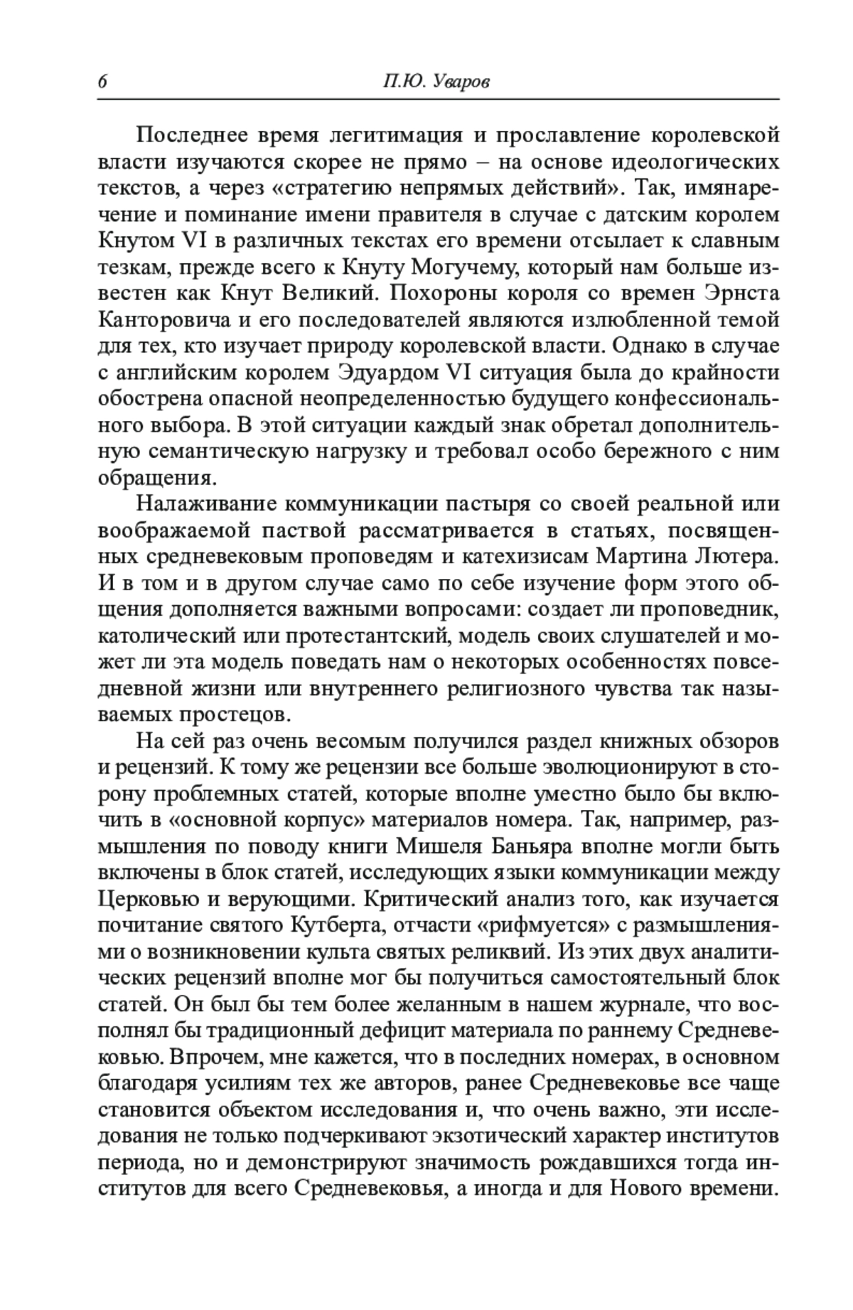 Рецензируемая монография представляет собой переиздание этой книги, вышедшее в свет на французском языке в 1992 г., дополненное автором с учетом новейших исследований. Она содержит богатый материал по истории латинского языка Поздней Античности и Раннего Средневековья и формирования на его основе западно-романских языков, но не является систематическим изложением фактов, характеризующих этот процесс. Перед нами исследование одного из важнейших его аспектов: соотношения в эту эпоху литературного латинского языка, с одной стороны, и разговорного – с другой. Анализируя самые разные источники (трактаты, проповеди, жития святых, хроники, акты церковных соборов, в меньшей мере документы и надписи), автор приходит к выводу, что до конца VIII в., в Италии – до конца IX в. и даже позднее, сохранялось определенное единство между языком образованной элиты и языком плохо или вовсе не образованного населения, что обеспечивало вертикальную коммуникацию между этими социальными группами. Сохранялась и возможность коммуникации на одном языке во всем ареале романской части Европы. Эти выводы очень важны для осмысления социокультурных процессов данной эпохи и информативности дошедших до нас источников. Критически воспринимая некоторые выводы, содержащиеся в данной книге, авторы рецензии оценивают ее очень высоко.