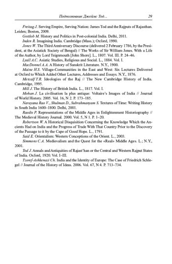 18. Freitag J. Serving Empire, Serving Nation: James Tod and the Rajputs of Rajasthan. Leiden; Boston, 2009.