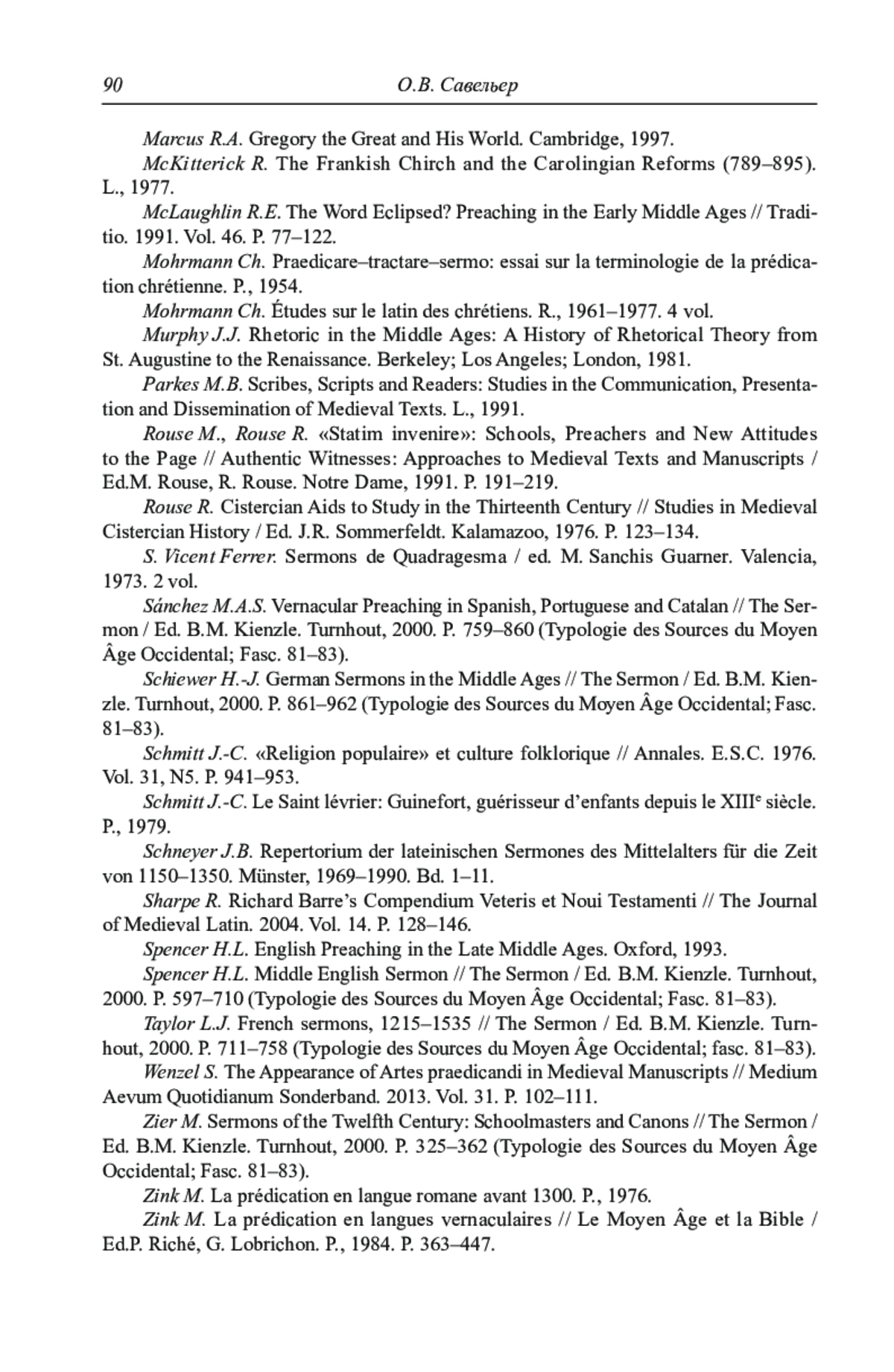 13. Bériou N. Les sermons latins après 1200 // The Sermon / Ed. B.M. Kienzle. Turnhout, 2000. P. 363-448 (Typologie des Sources du Moyen Âge Occidental; Fasc. 81-83).