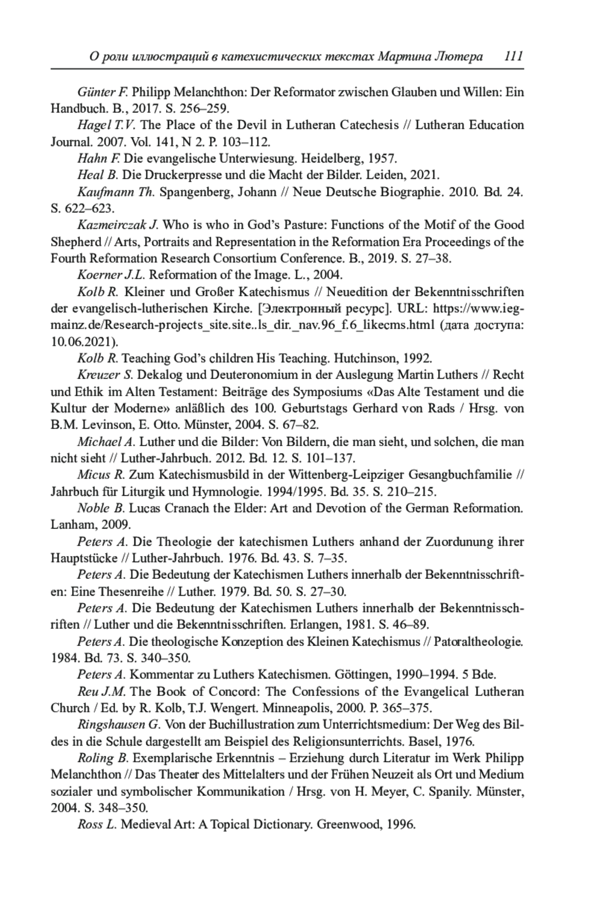 34. Peters A. Die theologische Konzeption des Kleinen Katechismus // Patoraltheologie. 1984. Bd. 73. S. 340-350.