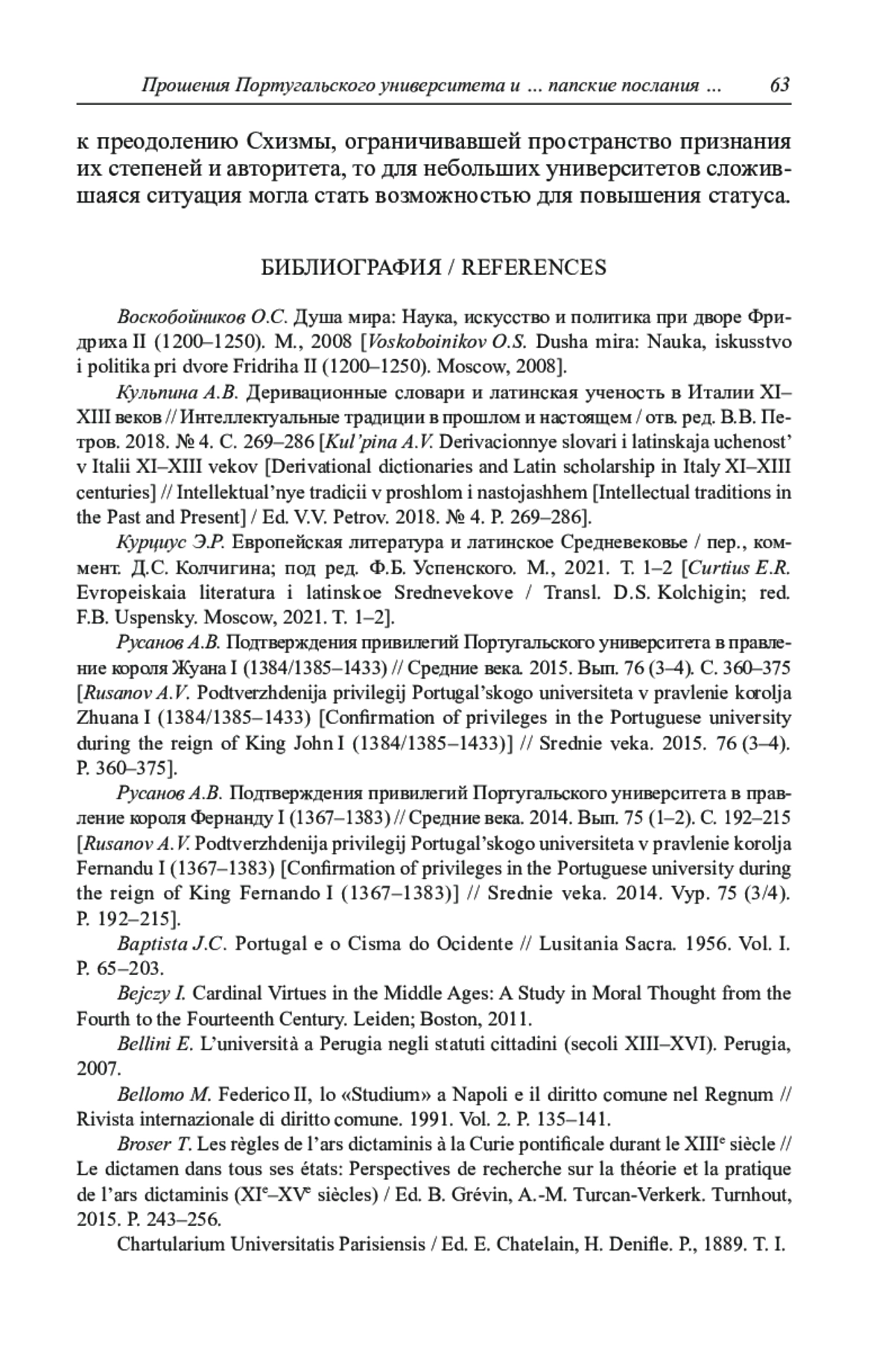 33. Rusanov A. Continuity of University History: a Case-Study of Portuguese Studium Generale (1288-1377) // History of Education and Children’s Literature. 2014. Vol. IX, N 1. P. 287-299. EDN: UEOVMX