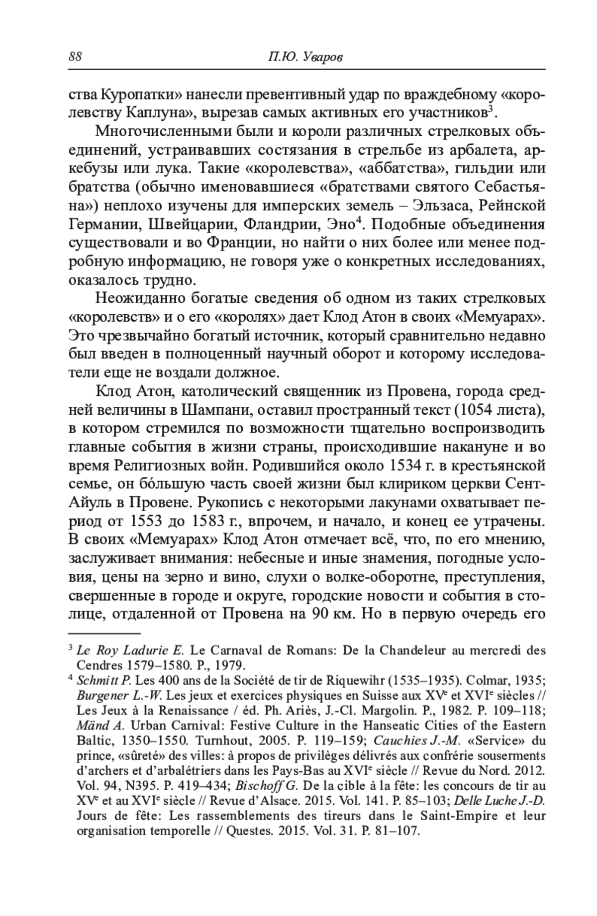 3. Уваров П.Ю. Клод Атон - бытописатель французской смуты // Французское общество в эпоху культурного перелома: От Франциска I до Людовика XIV / под ред. Е.Е. Бергер и П.Ю. Уварова. М., 2008. С. 91-103. (Приложение к журналу “Средние века”; Вып. 3).