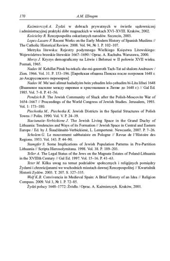 37. Pendzich B. The Jewish Community of Sluck after the Polish-Moscovite War of 1654-1667 // Proceedings of the World Congress of Jewish Studies. Jerusalem, 1993. Vol. 1: 173-180.