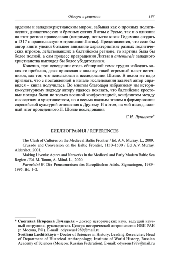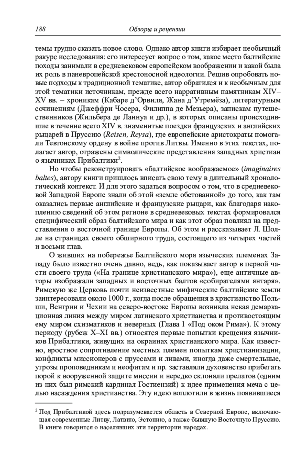 Книга швейцарского историка Лоика Шолле посвящена истории северных крестовых походов. Как известно, со времен окончания «холодной войны» историография этого сюжета существенно обновилась1, свою лепту в его изучение внесли и российские историки (М. Б. Бессуднова, В. И. Матузова, Е. Л. Назарова, Д. Г. Хрусталев и др.).