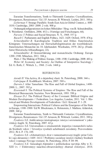 7. Федоров С.Е. Универсализм vs этноцентризм: империя и монархии к исходу Средних веков // Изв. высших учебных заведений. Правоведение. 2012. №6. С. 176-189. EDN: QBKBZV