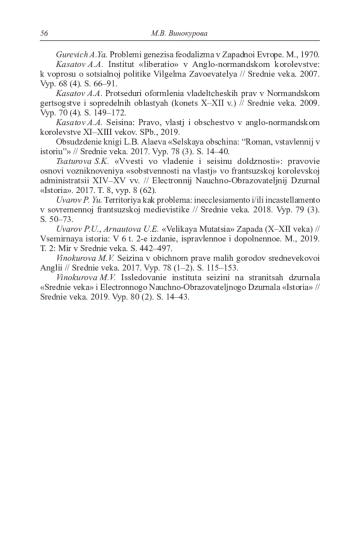 5. Винокурова М.В. Исследование института сейзины на страницах журналов “Средние века” и ЭНОЖ “История” // Средние века. 2019. Вып. 80 (2). С. 14-43. EDN: MQTUTB