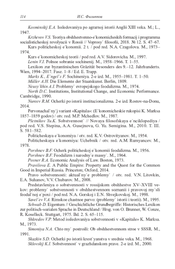 44. Filippov I. La naissance du servage rasse: survol de Г historiographic contemporaine // Nouveaux servages et societe en Europe (XIIIe-XXe siecle). Caen, 2010. P. 333-382. EDN: SWQRVP