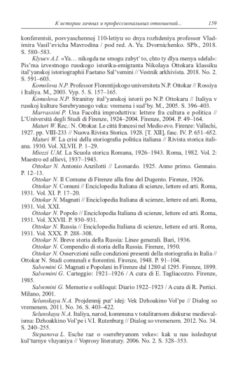 Вниманию читателя предлагаются письма известного русского и итальянского медиевиста Николая Оттокара своему коллеге, знаменитому итальянскому медиевисту и политическому деятелю Джоаккино Вольпе. Данные документы характеризуют не только личные взаимоотношения двух историков, но и некоторые сюжеты, связанные с развитием итальянской медиевистики первой трети XX в.