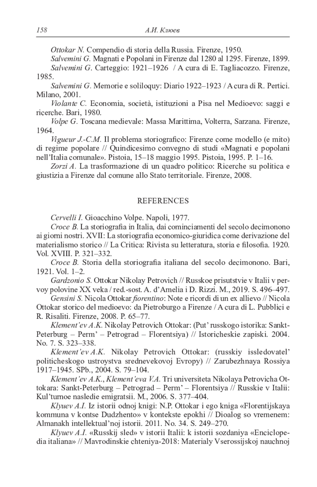 КЛЮЕВ А. И. К ИСТОРИИ ЛИЧНЫХ И ПРОФЕССИОНАЛЬНЫХ ОТНОШЕНИЙ НИКОЛАЯ ОТТОКАРА И ДЖОАККИНО ВОЛЬПЕ // СРЕДНИЕ ВЕКА. 2020. Т. 81 № 1