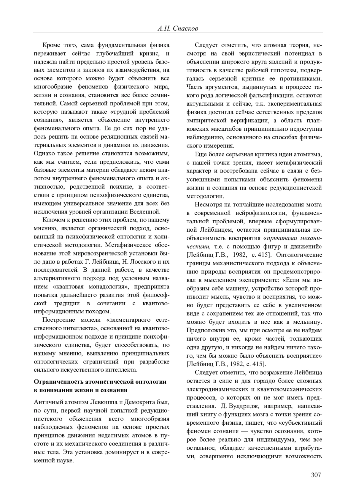 10. Спасков А.Н. Волновая концепция Я в квантовой монадологии // Интеллектуальная культура Беларуси: гуманитарная безопасность в условиях глобальных вызовов: материалы Седьмой междунар. науч. конф. (Минск, 16-17 ноября 2023 г.): в 2 т. / под ред. А.А. Лазаревича и др. Минск: Четыре четверти, 2023. Т. 2. С. 131-135.