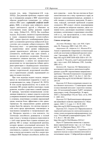 7. Биричева Е.В., Стерхов Е.В. Парадоксальность творческой деятельности и интеллектуальные системы: поиск альтернатив информационному подходу // Российский гуманитарный журнал. 2019. Т. 8, № 6. С. 390-402. DOI: 10.15643/libartrus-2019.6.2 EDN: YNFTAJ