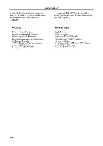 Статья: ЧЕЛОВЕЧЕСКОЕ И ПОСТЧЕЛОВЕЧЕСКОЕ: КАЧЕСТВА, ГРАНИЦЫ И ОТНОШЕНИЯ С ПОЗИЦИЙ ТЕХНОЛОГИЧЕСКОГО ПОСТГУМАНИЗМА (2024)