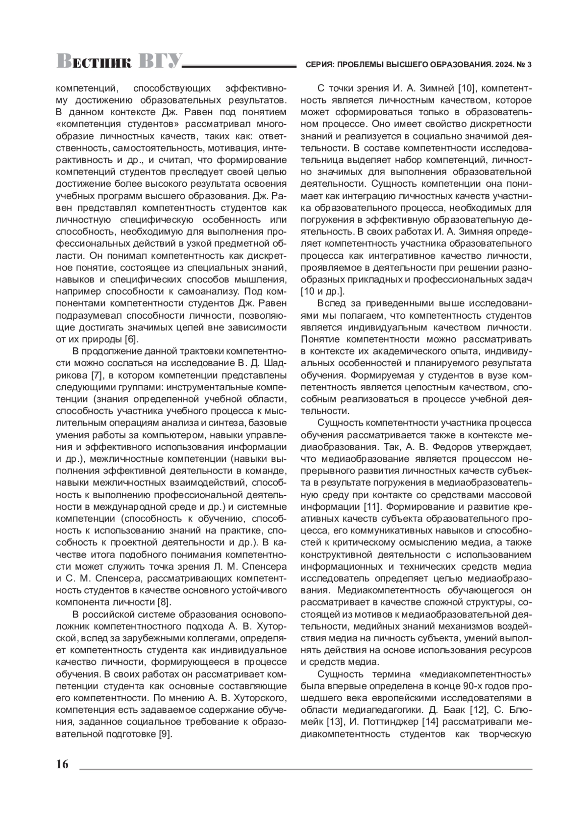 ЗОБОВА С.В., ЧЖАН Ц., ГАЛУСТЯН О. В. МЕДИАКОМПЕТЕНТНОСТЬ СТУДЕНТОВ В СИСТЕМЕ ВЫСШЕГО ОБРАЗОВАНИЯ: ТЕОРЕТИЧЕСКИЙ КОНТЕКСТ // ВЕСТНИК ВОРОНЕЖСКОГО ГОСУДАРСТВЕННОГО УНИВЕРСИТЕТА. СЕРИЯ: ПРОБЛЕМЫ ВЫСШЕГО ОБРАЗОВАНИЯ. 2024. № 3