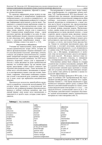 В настоящее время педагогам, психологам, методистам, профессорам по всему миру необходимо работать над повышением качества образования, потому что от образования целого поколения зависит очень многое. Педагоги-практики утверждают, что качество технического образования в вузах можно повысить за счет использования современных, инновационных средств учебного процесса. Цель статьи - теоретически обосновать эффективность применения разработанной лексико-грамматической опоры в разноуровневых языковых группах студентов, где необходимо достигнуть единой цели, но не за счет количества заданий. Кроме того, приводится пример лексико-грамматической опоры и объясняется актуальность включения дополнительного материала в данную опору. В этой статье большое внимание уделяется тому, как вербальные опоры могут использоваться для поддержания интереса изучения языка путем обратной связи со студентами, в создании стимулирующей учебной среды, адаптированной к потребностям обучающихся. Результаты показали, что простая форма изложения позволяет любому преподавателю подобрать под свои учебные цели и задачи именно такой инструмент поддержки, что может благотворно влиять на моделирование образовательного процесса в высшей школе.