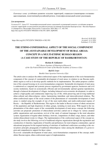 Статья: ЭТНОКОНФЕССИОНАЛЬНЫЙ АСПЕКТ СОЦИАЛЬНОЙ СОСТАВЛЯЮЩЕЙ КОНЦЕПТА "УСТОЙЧИВОЕ РАЗВИТИЕ СЕЛЬСКИХ ТЕРРИТОРИЙ" В ПОЛИЭТНИЧНОМ РОССИЙСКОМ РЕГИОНЕ (НА ПРИМЕРЕ РЕСПУБЛИКИ БАШКОРТОСТАН) (2024)