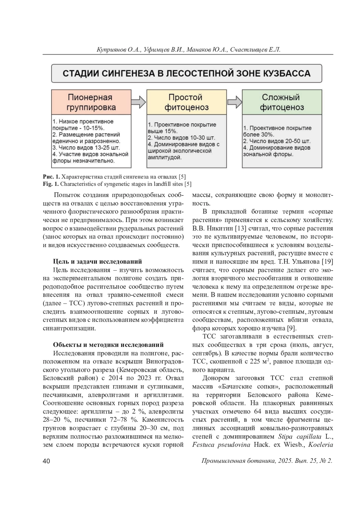 6. Куприянов А.Н., Марсакова Ю.В. Начальные этапы формирования растительного покрова на техногенных экотопах Кузбасса // Сибирский экологический журнал. 2008. Т. 15, N 2. С. 255-261.