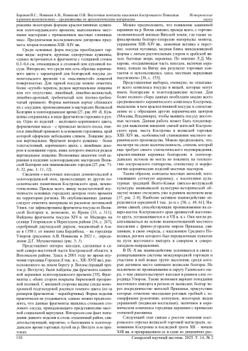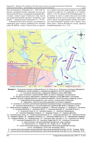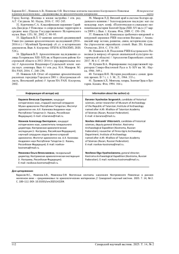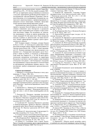 БАРАНОВ В. С., НОВИКОВ А. В., НОВИКОВА О. В. ВОСТОЧНЫЕ КОНТАКТЫ НАСЕЛЕНИЯ КОСТРОМСКОГО ПОВОЛЖЬЯ В РАННЕМ ЖЕЛЕЗНОМ ВЕКЕ - СРЕДНЕВЕКОВЬЕ ПО АРХЕОЛОГИЧЕСКИМ МАТЕРИАЛАМ // САМАРСКИЙ НАУЧНЫЙ ВЕСТНИК. 2025. ТОМ 14, № 2