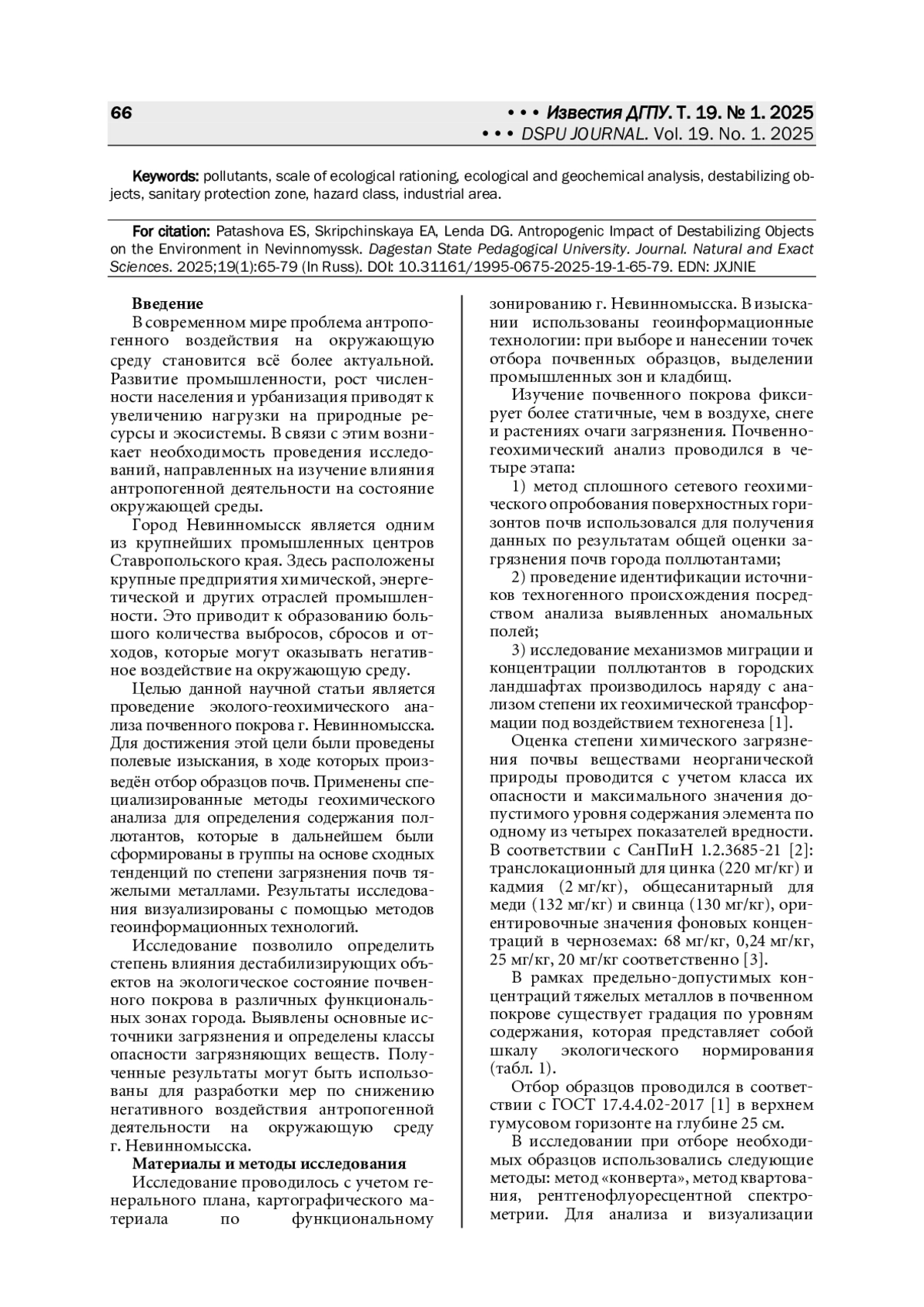 6. Паташова Е. С. Интенсивность геохимического загрязнения почвенного покрова в пределах города Изобильного Ставропольского края // Географические проблемы развития стран и регионов: сборник материалов III Международной научно-практической конференции / под ред. Н. А. Щитовой. Ставрополь: СКФУ, 2024. С. 334-340.