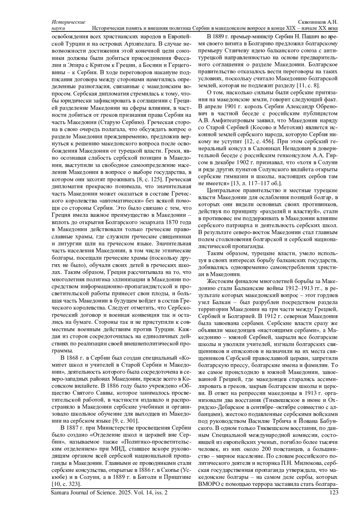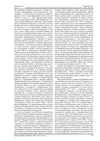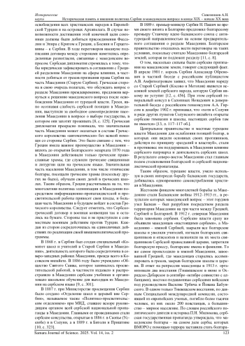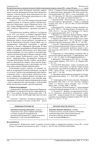 2. Гусев Н.С. Сербская и болгарская пропаганда по македонскому вопросу в России в конце XIX - начале XX вв. // Славяне и Россия: Балканы в вихре национально-освободительных движений (к 200-летию начала Греческой революции 1821-1829 гг.): колл. монография / отв. ред. С.И. Данченко. М.: Институт славяноведения РАН, 2022. С. 149-169. DOI: 10.31168/7576-0478-7.8 EDN: VGALVS