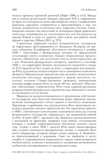 3. Прилуцкий 2017 - Прилуцкий В.В. Мормонская полигамия в Юте и на западных территориях США (1850-1890-е гг.) // Вестник Брянского государственного университета. 2017. № 2. C. 96-101. https://doi.org/10.22281/2413-9912-2023-07-04-105-115.
