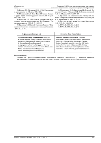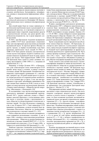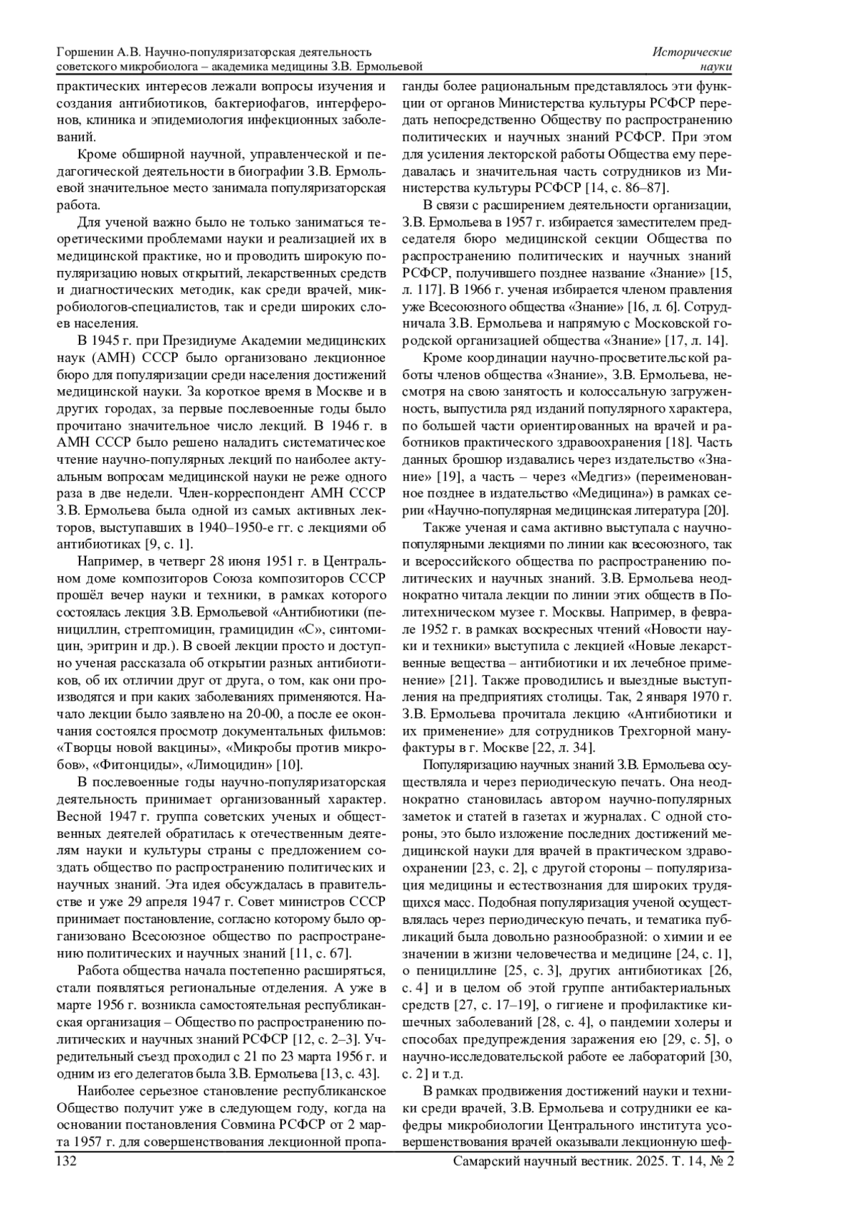 ГОРШЕНИН А. В. НАУЧНО-ПОПУЛЯРИЗАТОРСКАЯ ДЕЯТЕЛЬНОСТЬ СОВЕТСКОГО МИКРОБИОЛОГА - АКАДЕМИКА МЕДИЦИНЫ З. В. ЕРМОЛЬЕВОЙ // САМАРСКИЙ НАУЧНЫЙ ВЕСТНИК. 2025. ТОМ 14, № 2