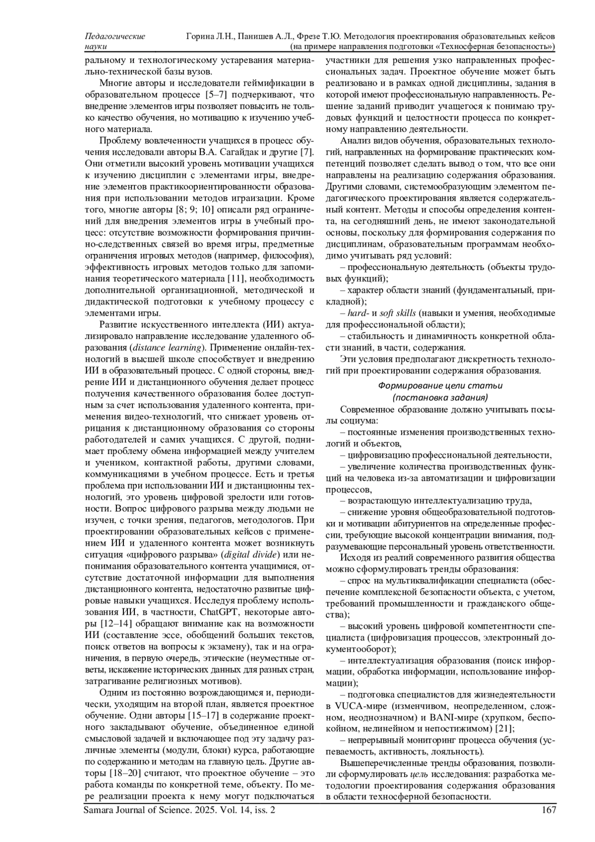 ГОРИНА Л. Н., ПАНИШЕВ А. Л., ФРЕЗЕ Т. Ю. МЕТОДОЛОГИЯ ПРОЕКТИРОВАНИЯ ОБРАЗОВАТЕЛЬНЫХ КЕЙСОВ (НА ПРИМЕРЕ НАПРАВЛЕНИЯ ПОДГОТОВКИ «ТЕХНОСФЕРНАЯ БЕЗОПАСНОСТЬ») // САМАРСКИЙ НАУЧНЫЙ ВЕСТНИК. 2025. ТОМ 14, № 2