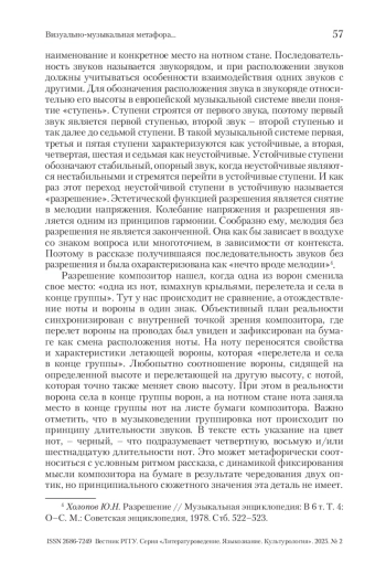 Статья посвящена проблеме взаимодействия визуального и музыкального в рассказе С. Кржижановского «Девять ворон». В статье последовательно проанализирован процесс сочетания внешней точки зрения повествователя, отражающей условной объективную реальность, и субъективно-воображаемой внутренней точкой зрения композитора, в которой происходит динамичная трансформация условно объективной реальности в музыкальные знаки. В итоге делается вывод о специфичном интермедиальном взаимодействии, которое можно обозначить как развернутую визуально-музыкальную метафору, ключом к которой является точка зрения композитора.