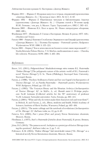 13. Faryno 2001 - Faryno J. Чем и зачем писатели болеют и лечат своих персонажей? // Studia litteraria Polono-Slavica. T. 6: Morbus, medicamentum et sanus - Choroba, lek i zdrowie. Warszawa: SOW, 2001. S. 485-494.
