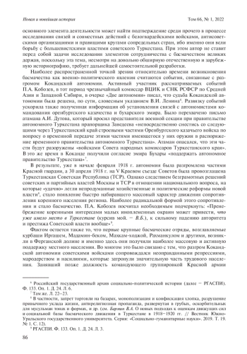 4. Бармин В.А. О новых подходах к оценкам движущих сил и социальной базы басмаческого движения в Туркестане в 1918-1920 гг. // Вестник Южно-Уральского государственного университета. Серия: “Социально-гуманитарные науки”. 2019. Т. 19. № 1. С. 12-15. EDN: YTCVGX