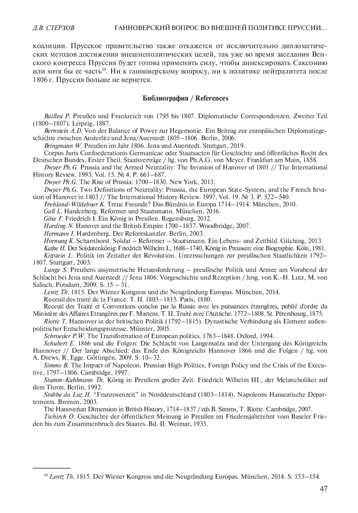 7. Dwyer Ph.G. Two Definitions of Neutrality: Prussia, the European State-System, and the French Invasion of Hanover in 1803 // The International History Review. 1997. Vol. 19. № 3. P. 522 - 540.